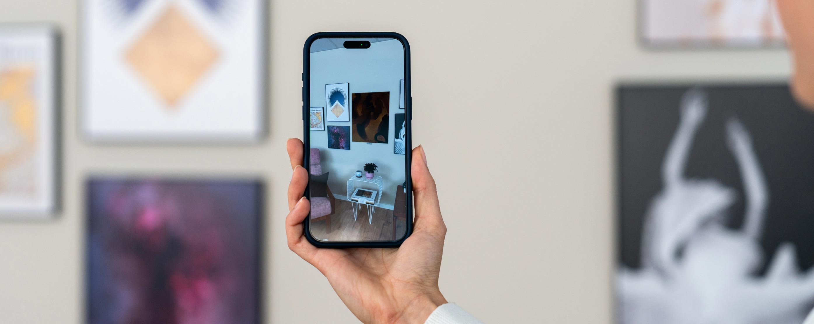 With Augmented Reality (AR), you can quickly and effortlessly check whether our art works on your wall, before you buy. In just a few steps, you’ll see how and where your favourite piece looks best, so you can order with complete confidence. It’s as easy as this: try with AR – buy – enjoy!
